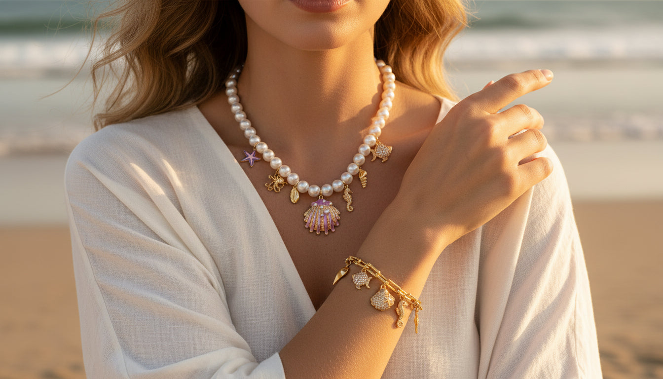 Pulsera Baño de Oro Cristal Austriaco Charms Encanto del Mar