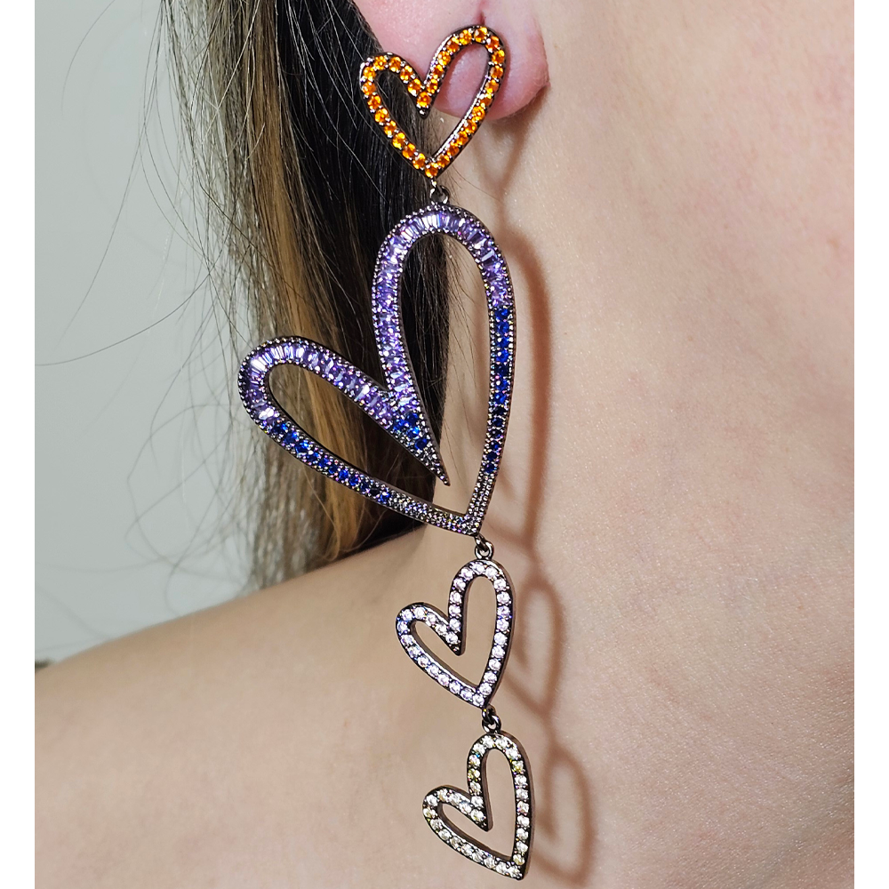 La elegancia atemporal de la plata rodinada se combina con la vivacidad de corazones engastados en cristales color naranjo, azul, lila y dorado. Cada corazón, trabajado con delicadeza, se enlaza al siguiente formando una cadena armoniosa que se mueve con suavidad, proyectando destellos de luz y color en cada paso. Una pieza romántica y refinada, ideal para añadir un toque de alegría y distinción a cualquier look.