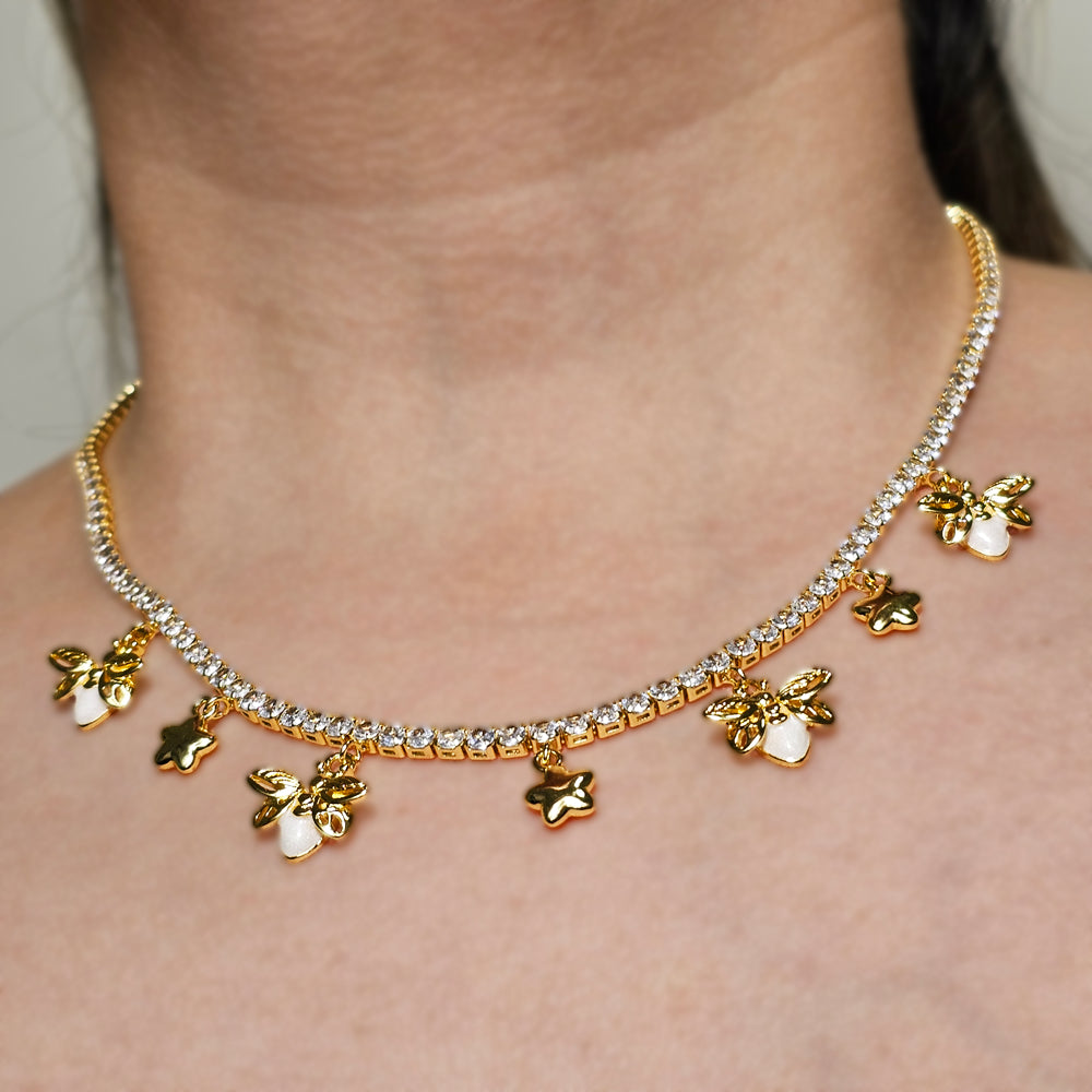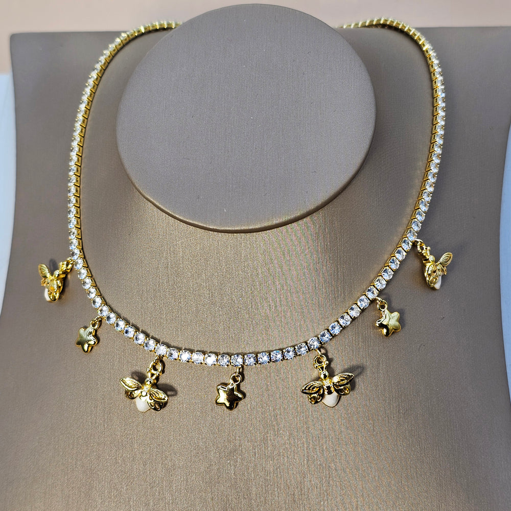 Collar Baño de Oro Cristal Austriaco Charms Luciernagas