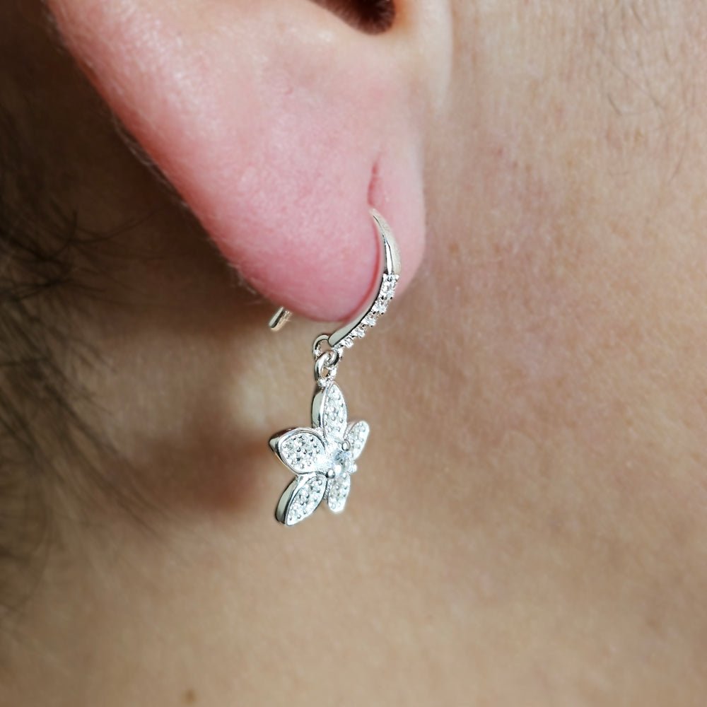 Aro de plata 925 con delicado dije de flor pavé, un diseño radiante y femenino que aporta brillo y elegancia a cualquier look.