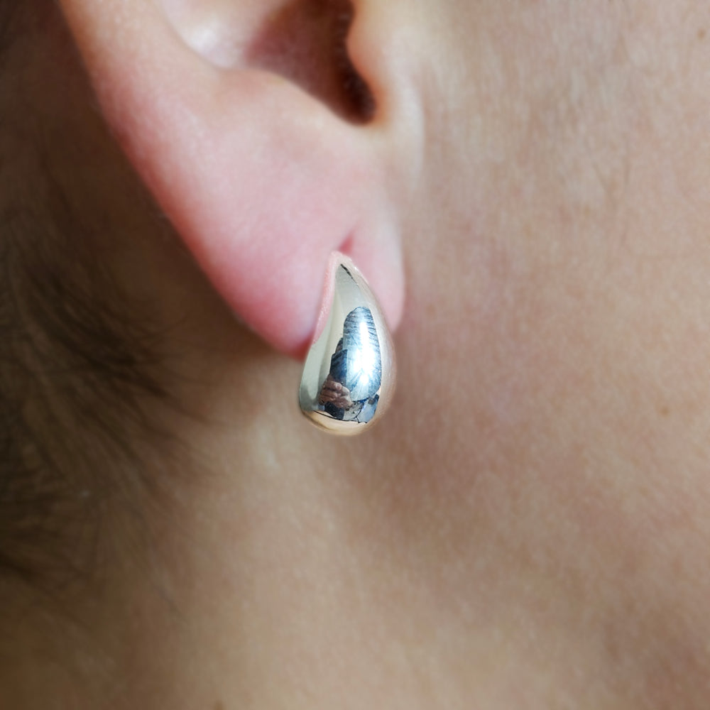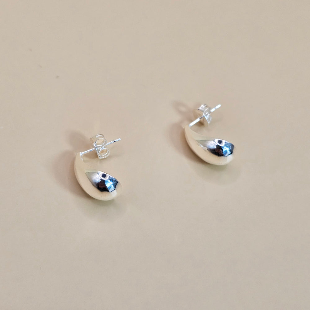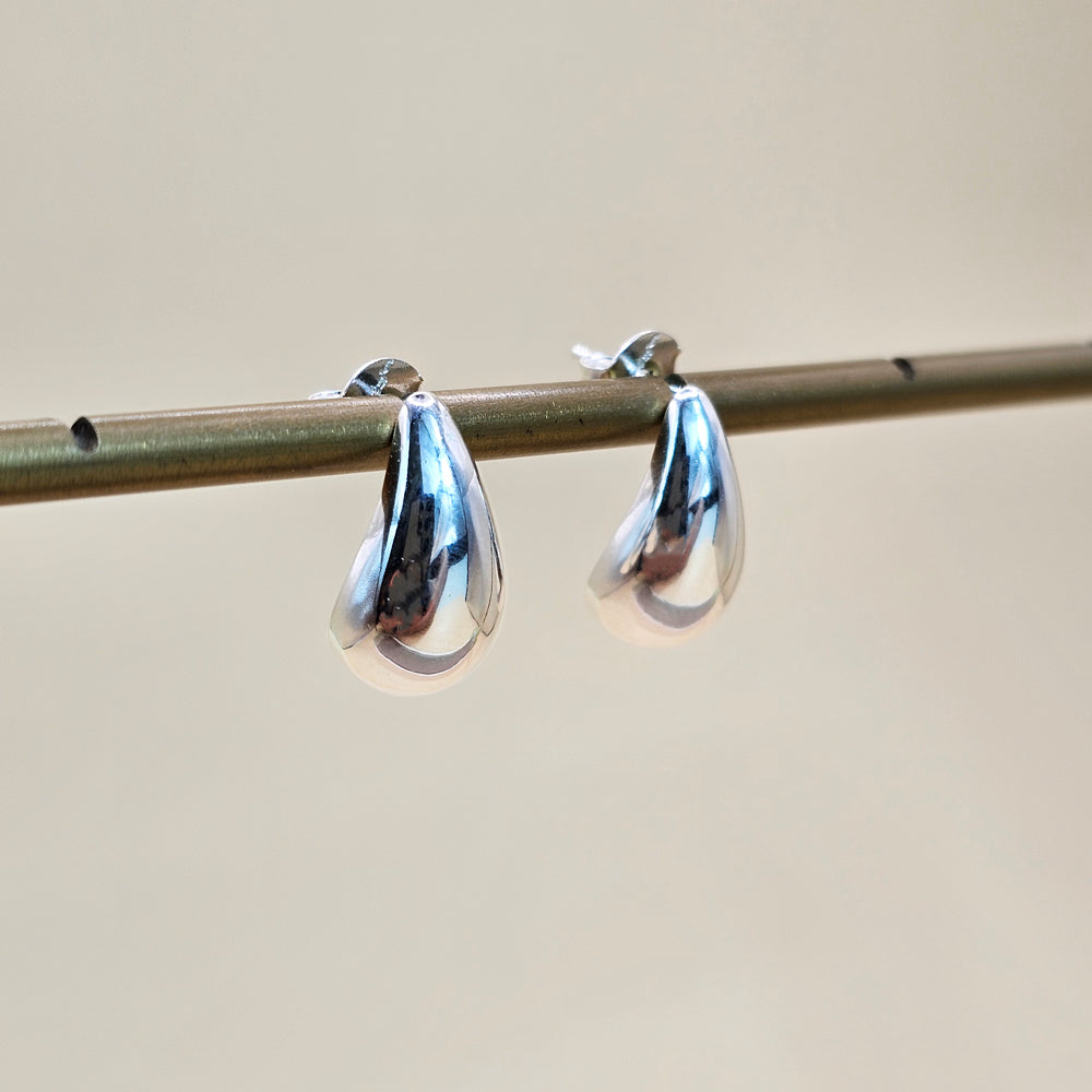 Aro de plata 925 con diseño en forma de gota pulida, una pieza sofisticada que destaca por su brillo espejo y su estilo minimalista, ideal para realzar cualquier look con elegancia.