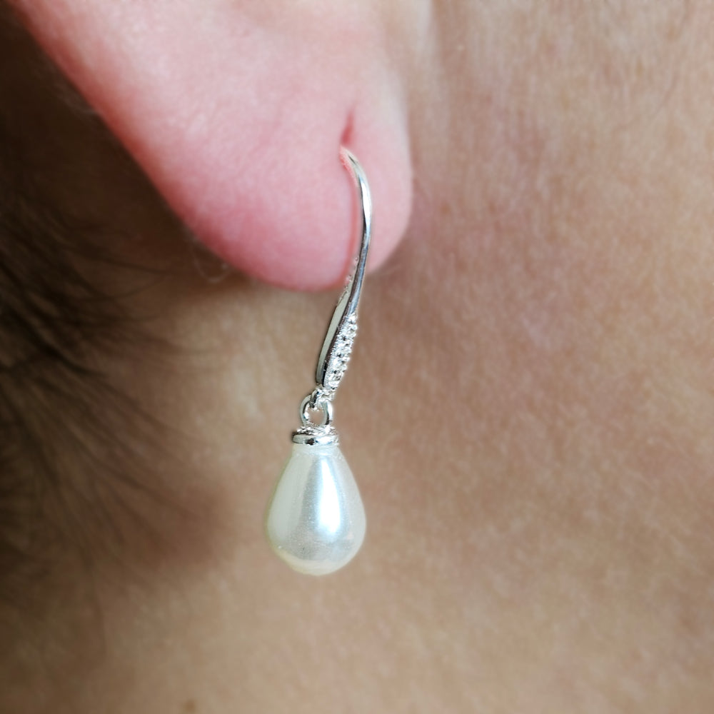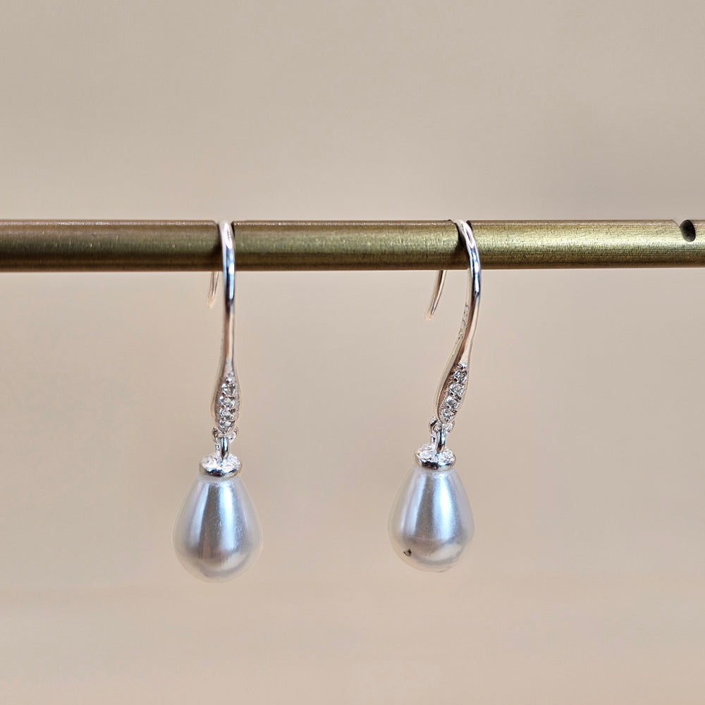 Aro de plata 925 con elegante perla en forma de lágrima y detalle de circones en la parte superior, un diseño sofisticado que aporta brillo y delicadeza a cualquier look.