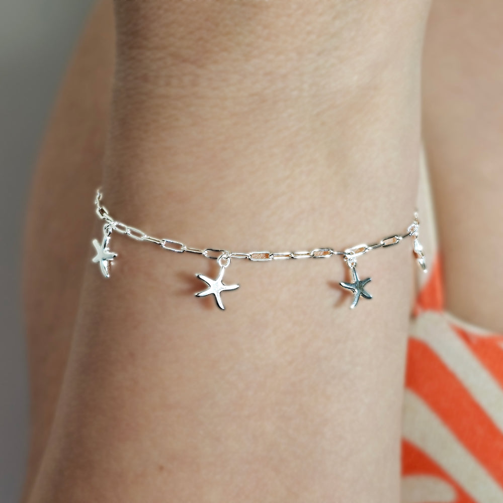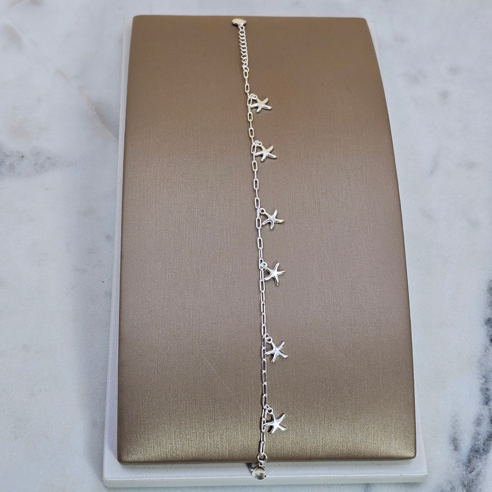 Pulsera de plata 925 con delicada cadena y encantadores colgantes de estrellas distribuidos a lo largo del diseño, que aportan un estilo sutil y luminoso. Una joya juvenil y elegante, ideal para complementar looks diarios con un toque moderno y delicado.