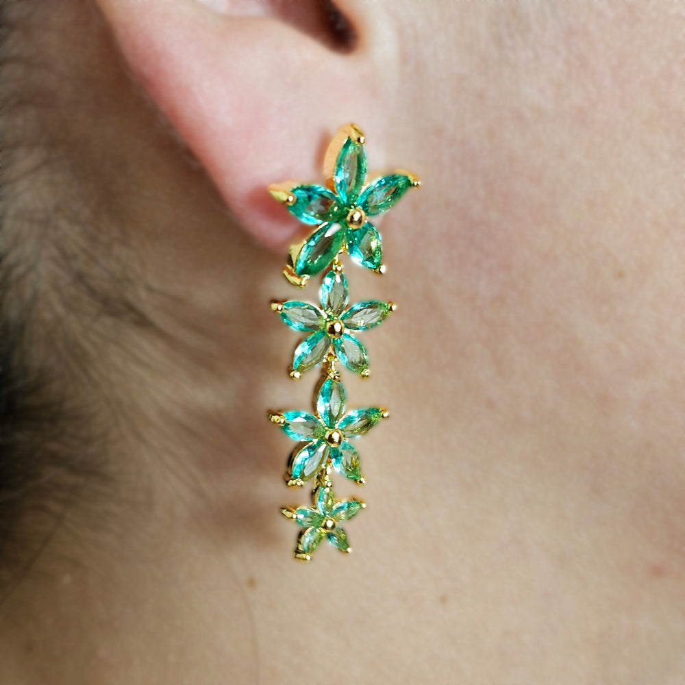 Aro bañado en oro con diseño de flores enlazadas, decorado con finos cristales verdes que aportan brillo y frescura. Una pieza elegante y llamativa, ideal para realzar cualquier look con un toque delicado y sofisticado.