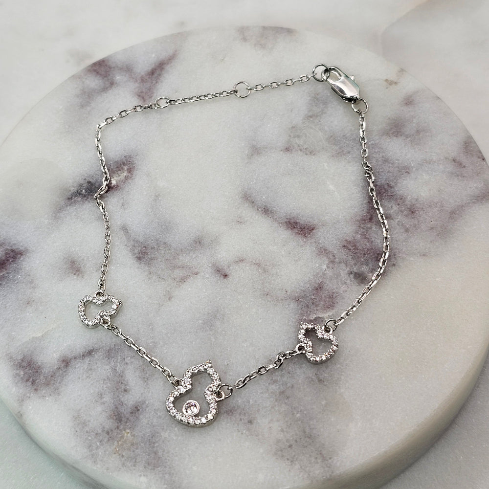 Pulsera bañada en plata rodinada con delicado dije de calabaza finamente adornado con circones brillantes. Una pieza elegante y encantadora que combina brillo, estilo y distinción.