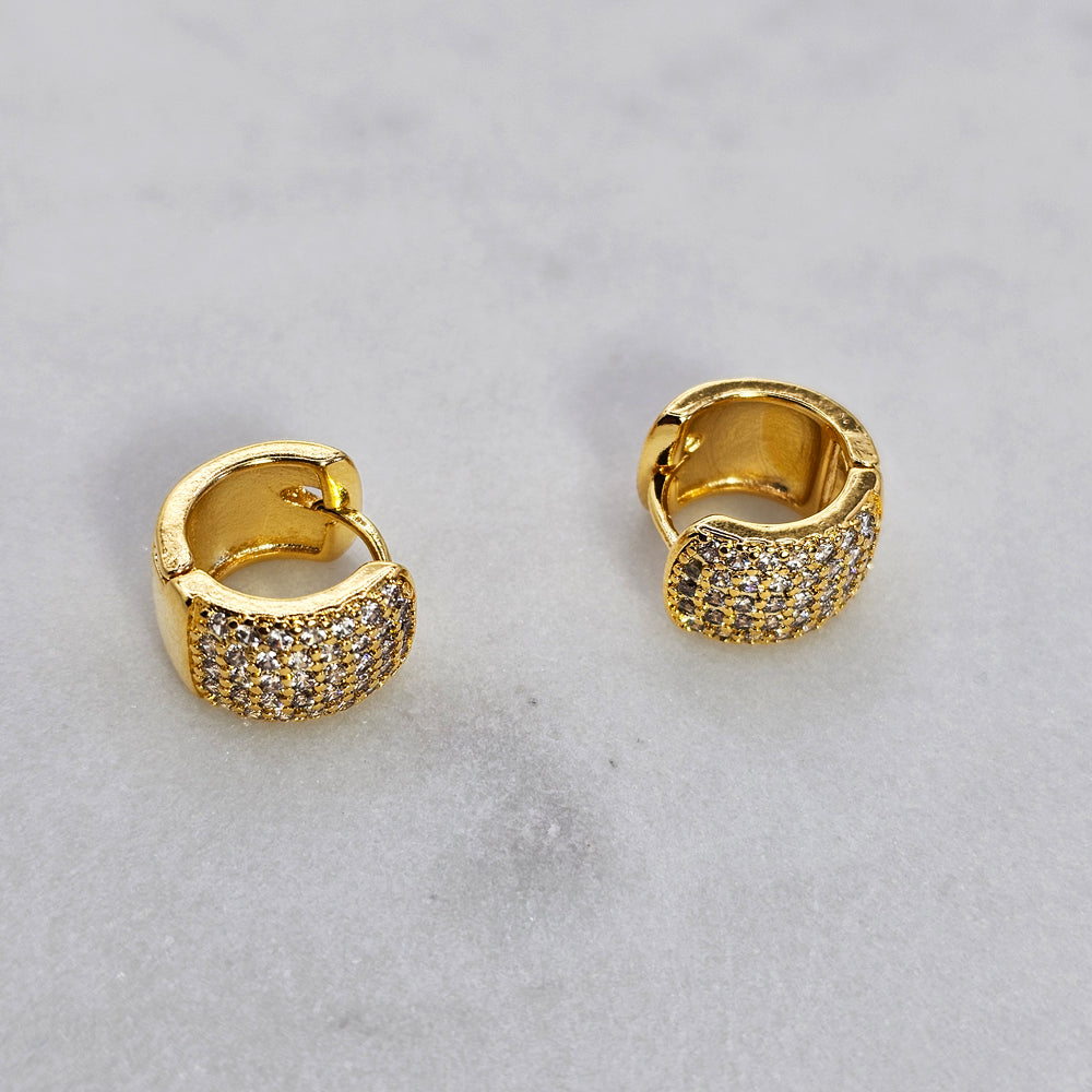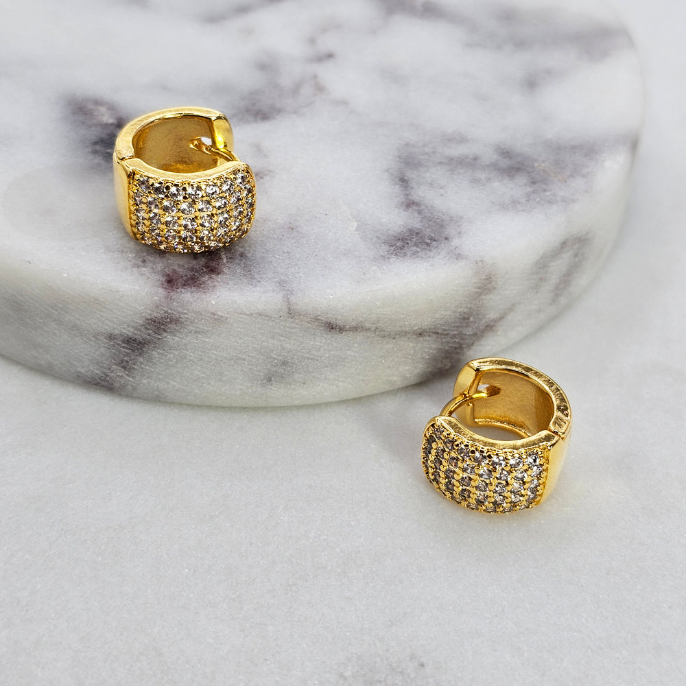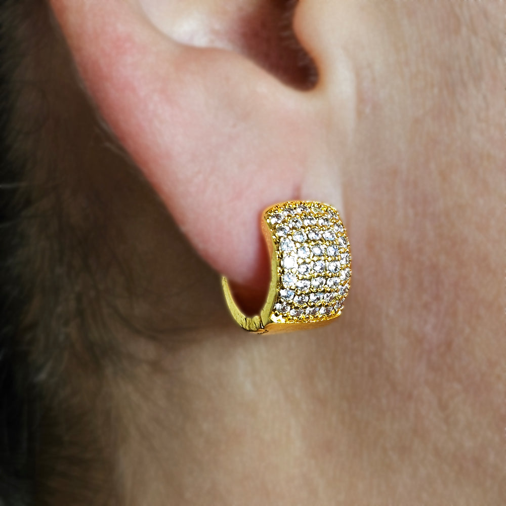 Aro bañado en oro con diseño ancho y acabado pavé de cristales, que ofrece un brillo intenso y uniforme. Una pieza moderna y sofisticada, perfecta para realzar cualquier look con un toque de lujo y distinción.
