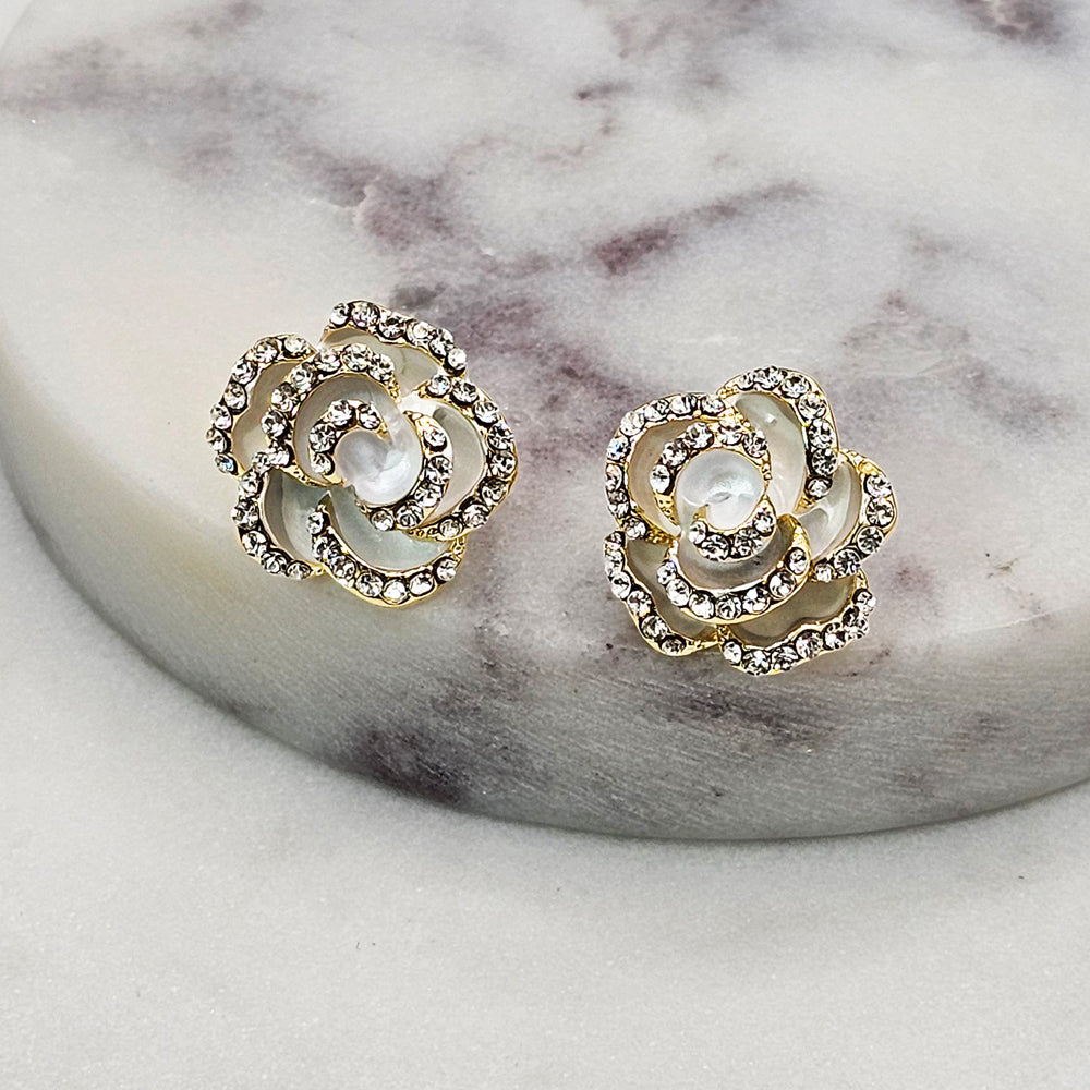 Un diseño romántico y refinado que combina la calidez del baño de oro con la delicada belleza de una rosa tallada en nácar. Finos cristales aportan destellos sutiles que realzan su elegancia, creando una pieza llena de encanto y feminidad. Ideal para quienes buscan un accesorio sofisticado que aporte un toque especial a cualquier ocasión.