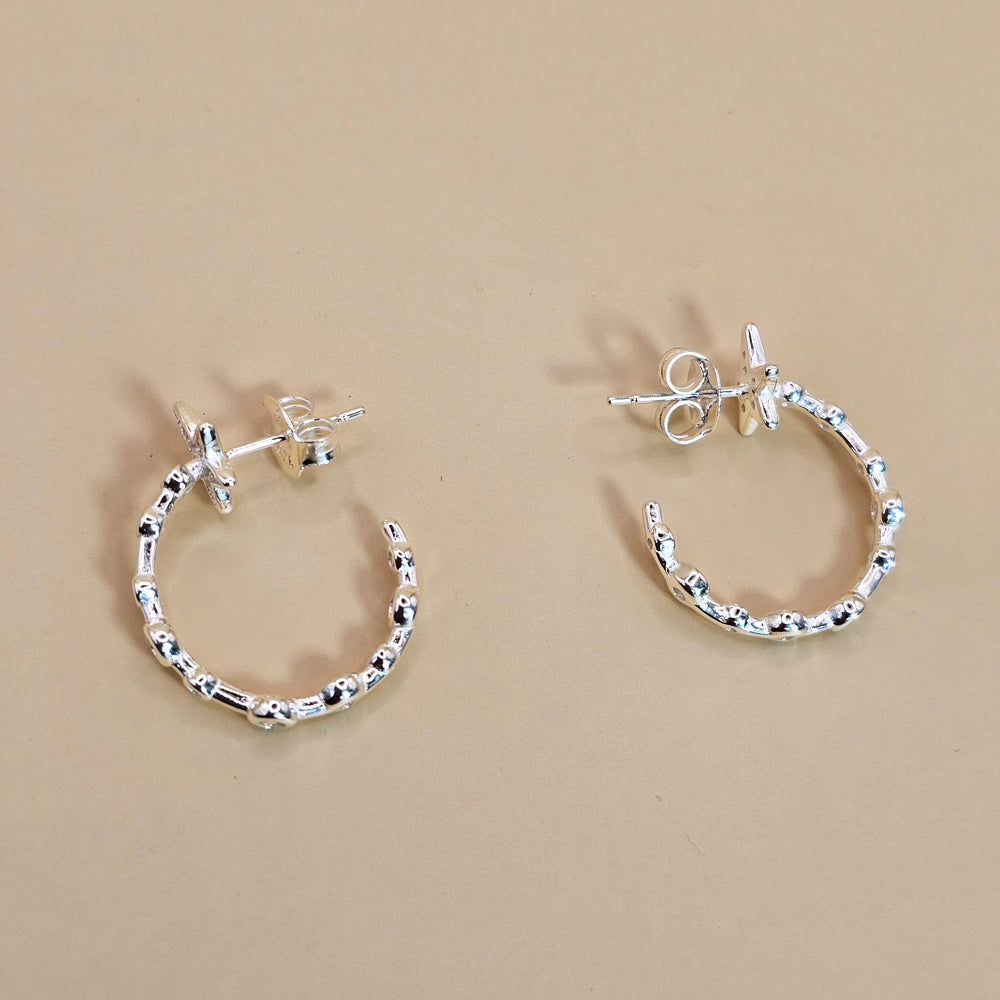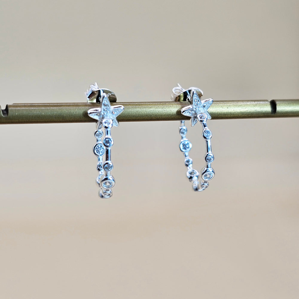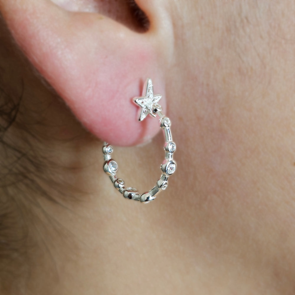 Aro tipo argolla de plata 925, adornado con delicadas esferas y una estrella brillante que aporta un toque moderno y femenino a tu look.