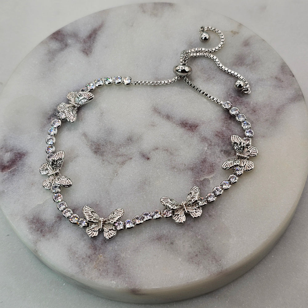 Pulsera Baño de Plata Rodinada Cristal Austriaco Mariposas